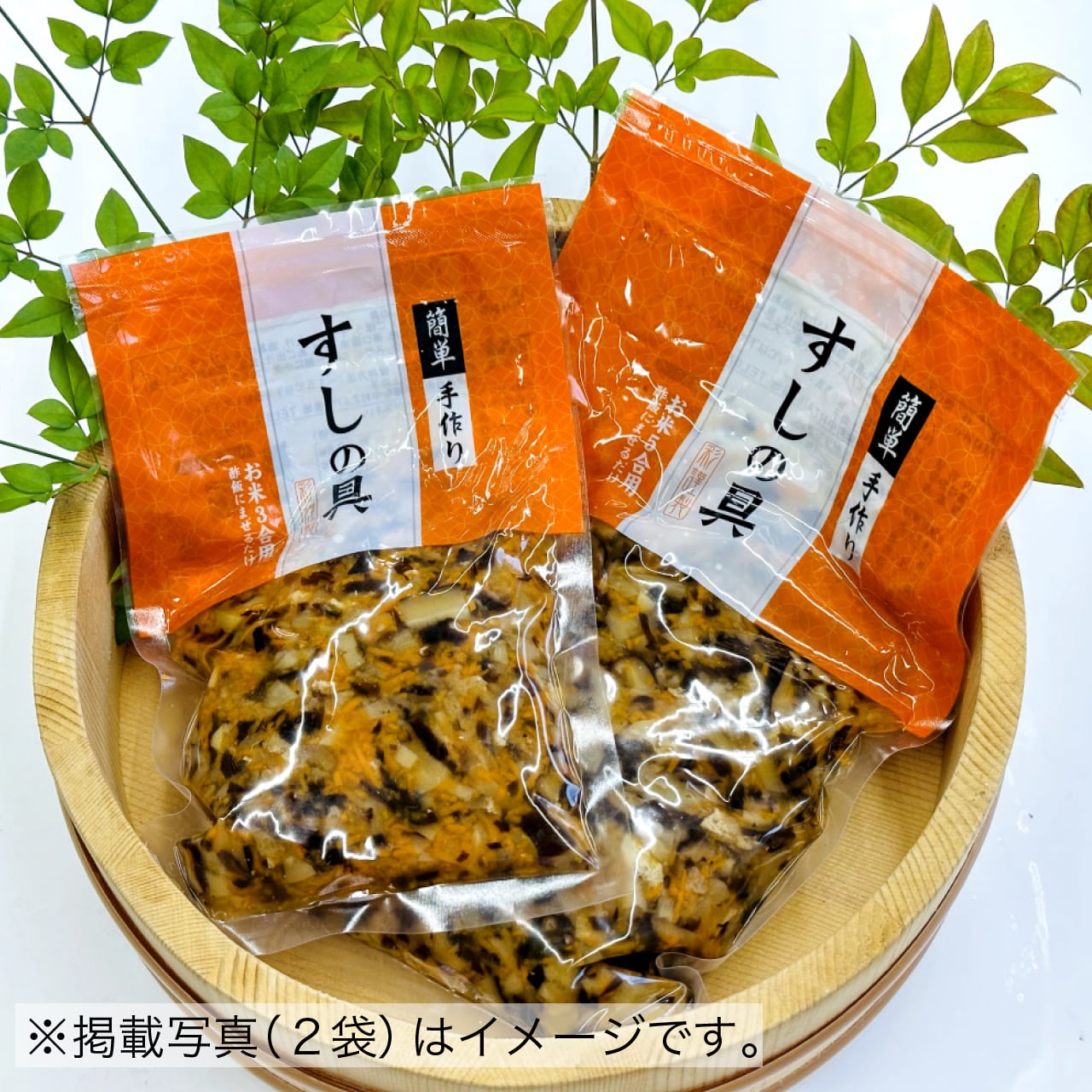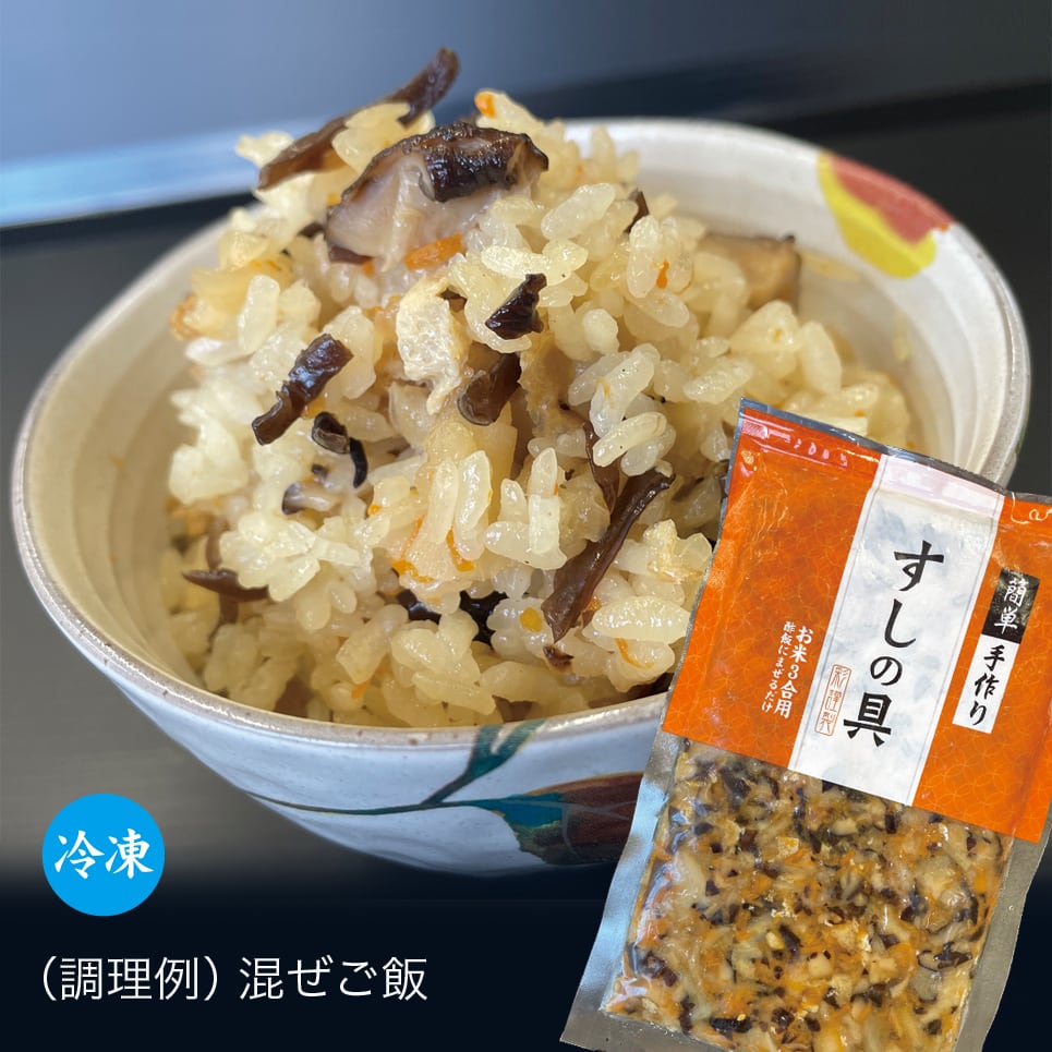 市販の酢飯の素やお好みの分量で酢飯をご用意していただき、すしの具(本商品)と混ぜるだけで簡単に本格的なおすしができます。本品は熱加工処理されていますので、解凍後は袋から具材を取り出しご飯の中に混ぜるだけです。簡単にまぜご飯ができます。